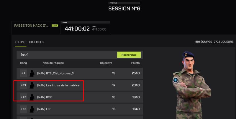 Ce hackathon était un CTF (Capture The Flag) qui consistait à réaliser 21 épreuves réparties sur deux semaines, regroupant de la cryptographie, du reverse engineering, de la stéganographie, de l'OSINT et du forensic. À la fin de ce hackathon, nous avons terminé 28ᵉ sur 591 équipes post-bac, avec 1684 équipes au total.