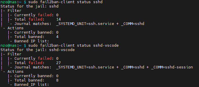 Enfin, comme solution de sécurité avancée, j’ai installé un pare-feu UFW, qui me permet de contrôler précisément l’ouverture et la fermeture des ports nécessaires sur mon NAS. J’ai également mis en place Fail2ban afin de sécuriser ma connexion SSH et de réduire les tentatives d’accès non autorisées, ce qui limite les attaques par force brute. Pour renforcer encore davantage la sécurité de ma connexion SSH, j’ai aussi configuré une authentification à deux facteurs reliée à une application sur mon téléphone, qui génère des codes aléatoires à usage unique lors de chaque connexion.