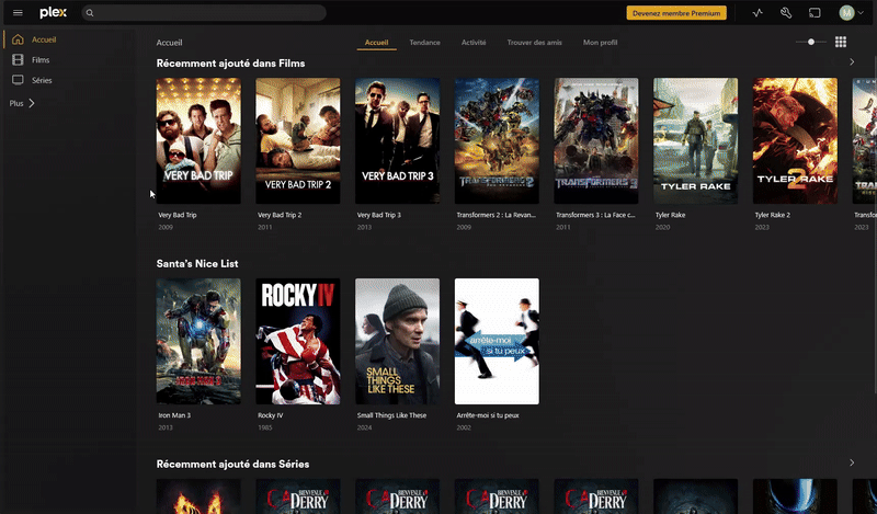Comme solution auto-hébergée pour mes films et séries, j’utilise Plex, qui dispose d’une interface très simple et permet d’accéder à ma bibliothèque depuis n’importe quel appareil via WireGuard. Plex intègre également la gestion des utilisateurs et des bibliothèques.