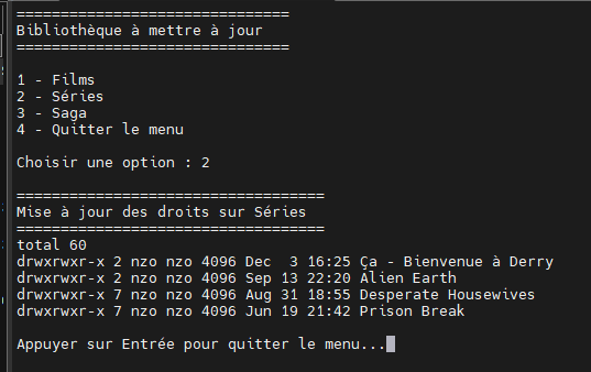 echo "Mise à jour des droits sur Séries"