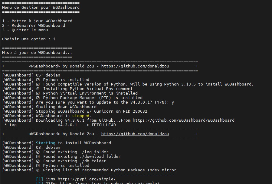 echo "1 - Mettre à jour WGDashboard"