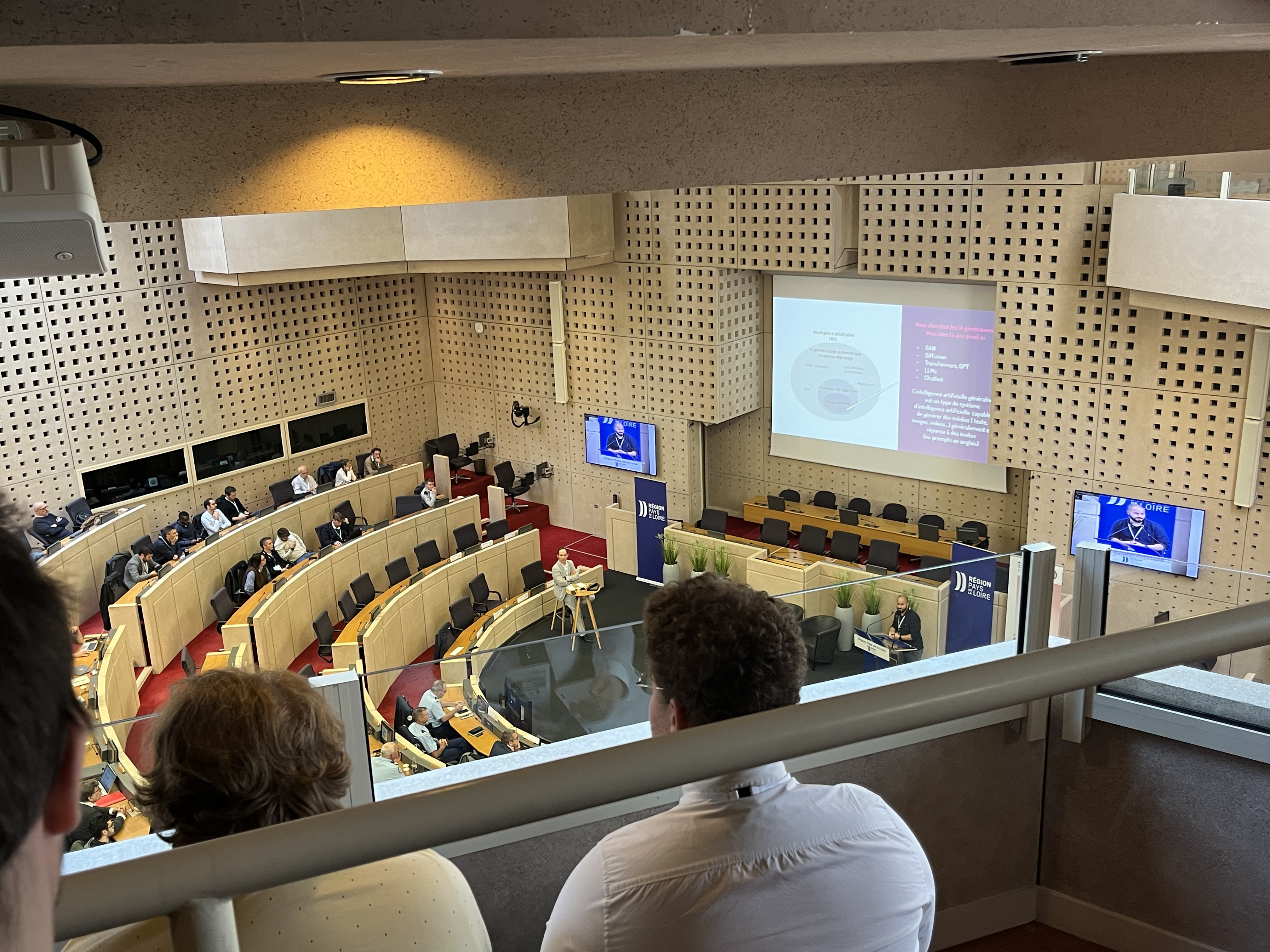 En fin de matinée, place à une conférence sur l’IA, présentée par Bastien Masse, directeur général de Class’Code, une association dédiée à la compréhension du monde informatique, qu’il s’agisse de la programmation, de l’IA ou encore du big data. L’intervention avait pour objectif de nous sensibiliser aux dangers, aux différents usages de l’IA générative, ainsi qu’à ses limites dans le monde de l’entreprise.