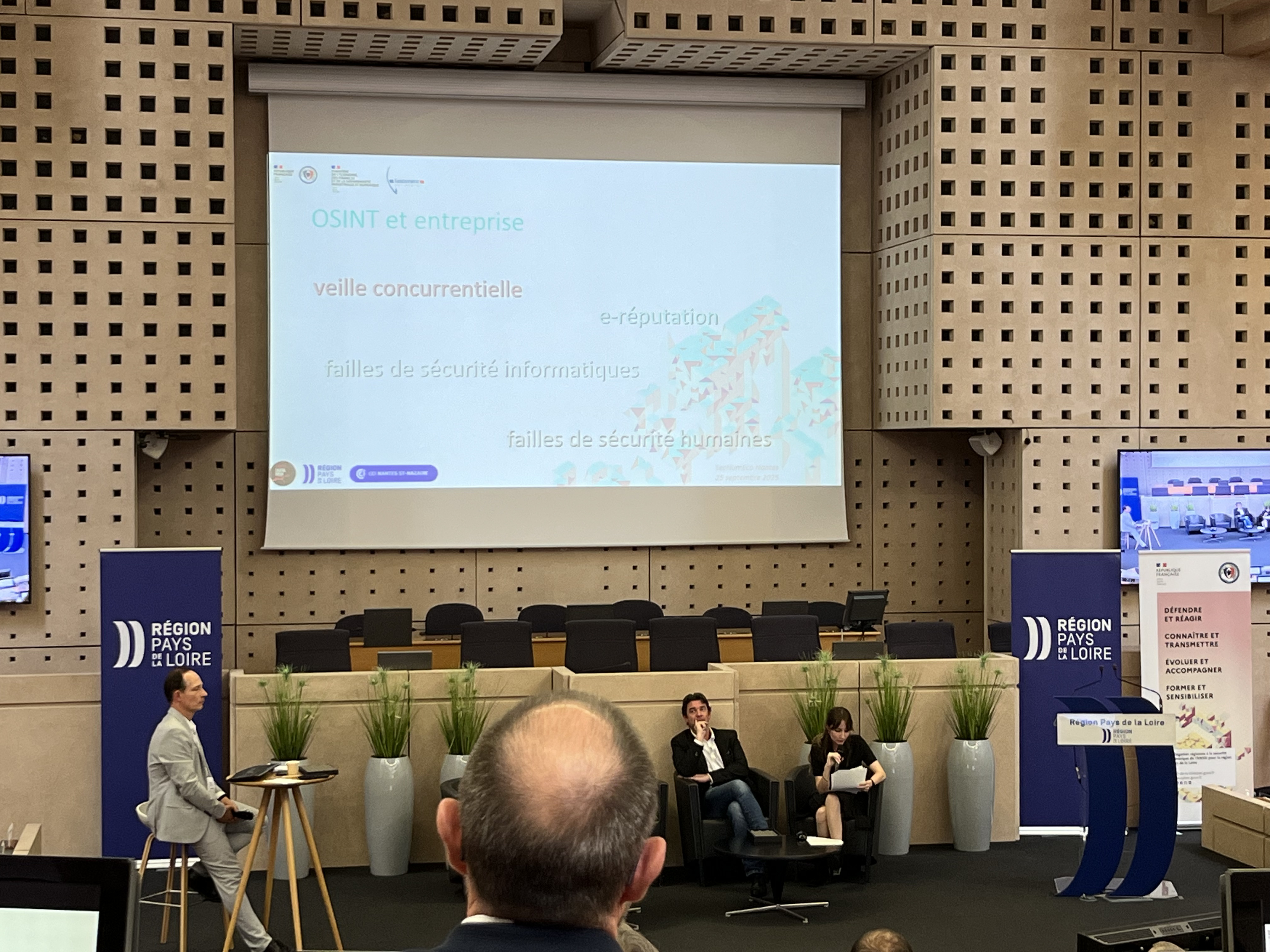 Enfin, la dernière conférence de la journée était consacrée à l’OSINT (Open Source Intelligence). Elle montrait de manière concrète comment, à partir d’informations librement accessibles sur Internet, il est aujourd’hui possible de retrouver très facilement une personne. L’intervention a mis en lumière l’importance de l’e-réputation et de la veille numérique, en expliquant comment les traces laissées en ligne peuvent être exploitées à des fins d’investigation, mais aussi de manière malveillante. Les intervenants ont également insisté sur les limites éthiques et juridiques de ces pratiques, notamment à travers le respect du RGPD et la nécessité de trouver un équilibre entre la puissance de ces techniques et la protection de la vie privée.
