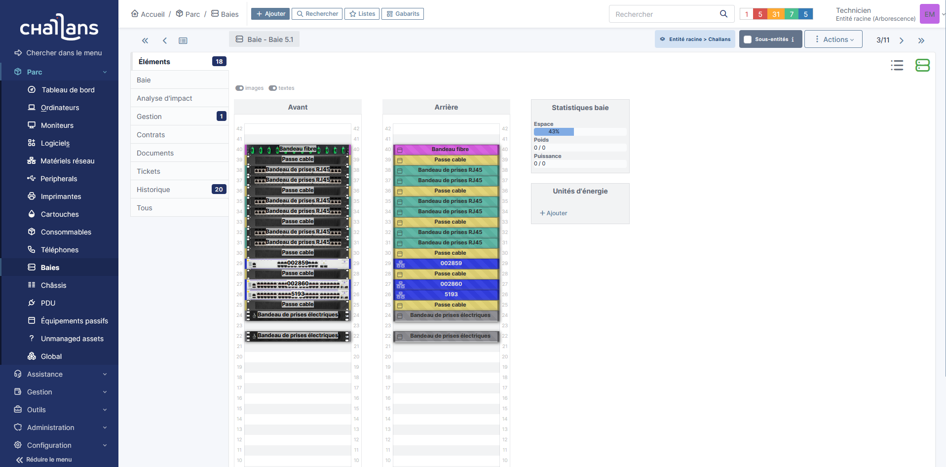 GLPI est un outil très complet qui permet de réaliser une multitude de tâches d'administration, d'assistance et de gestion. On peut, par exemple, y créer des tickets d’assistance, gérer les utilisateurs et le matériel. Ci-dessous, un exemple de baie réalisée : celle du 4ᵉ étage de la Mairie. Tout au long de mon stage, j’ai réalisé une quarantaine de baies dans GLPI comme celle-ci, en me déplaçant sur les sites concernés.
