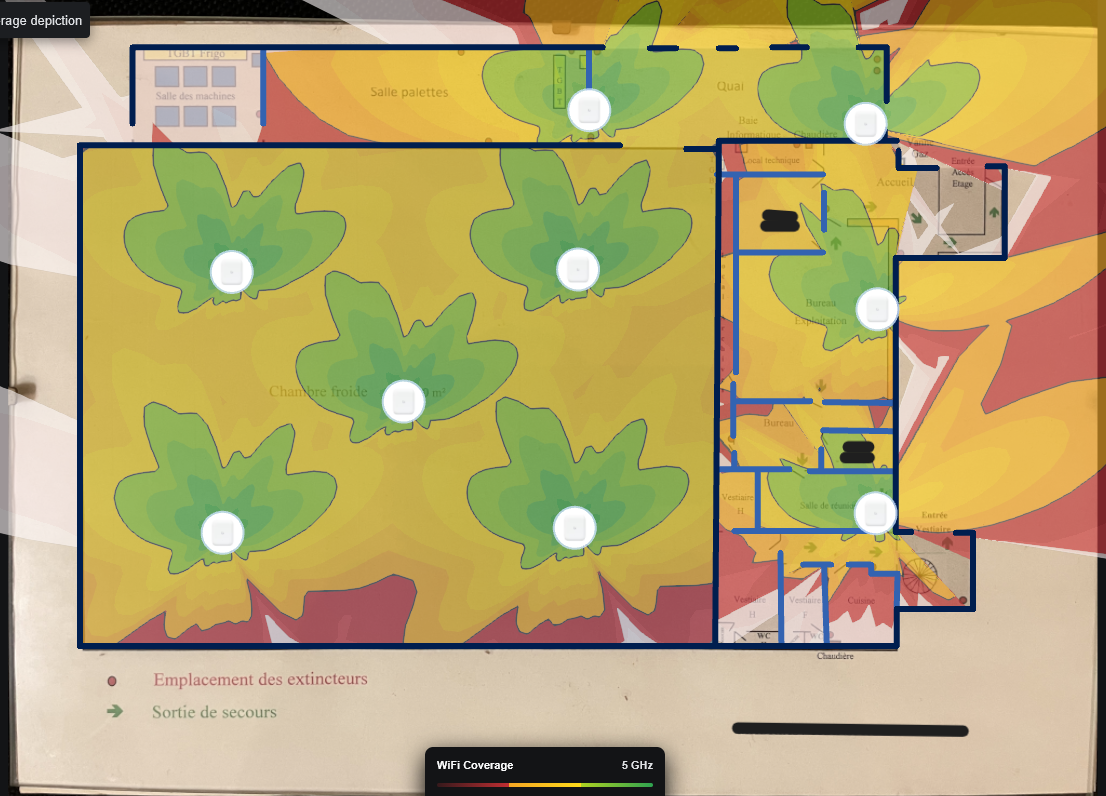 Arrivé au jeudi, on avait demandé des plans d'un des sites du client pour lequel j'avais dû faire leur infrastructure wifi pour que dans le logiciel du contrôleur je puisse faire une HeatMap c'est-à-dire un plan avec l'emplacement des bornes wifi pour voir la couverture qu'elles ont.