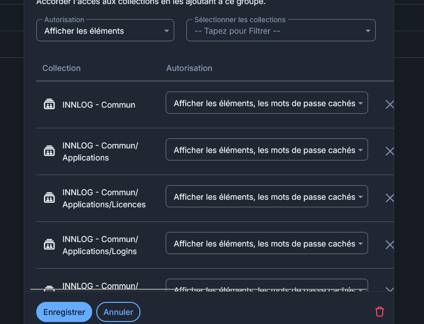 Le lundi de la troisième semaine, Anthony le responsable IT à qui j'avais donné un accès pour tester le Vaultwarden a rencontré un problème. En effet il avait accès aux différentes entrées présentes dans le coffre de l'organisation Innlog mais quand il cliquait sur une entrée il ne voyait pas l'URL. J'ai donc regardé et il s'avère que par défaut les utilisateurs invités ont le droit d'Afficher les éléments, hors pour voir les URL dans les entrées, il faut avec les droits Afficher les éléments, les mots de passe cachés.