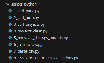 J'ai donc commencé par le script qui change les "numéros ID" en "mots ID" pour me retrouver avec des .json comme ça, le problème que j'ai eu en faisant ça c'est que certains projets sont vides et n'ont donc pas d'ID et ne peuvent pas conséquent par être changer en mot.