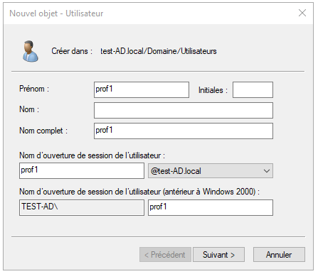 Pour finir, nous devons créer les utilisateurs pour ensuite les affectés à des groupes globaux.