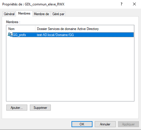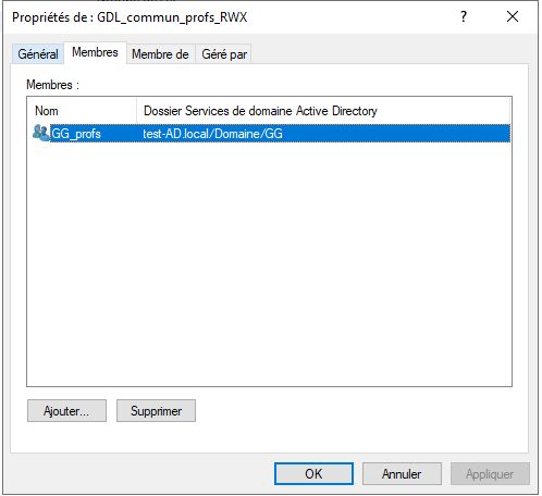 Pour appliquer les permissions NTFS sur les dossiers partagés, nous devons placer les utilisateurs dans les groupes globaux, puis insérer ces groupes globaux dans les groupes de domaine local.