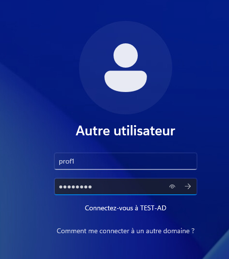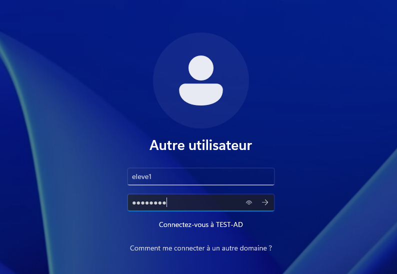 Pour le test final, il faudra se connecter à un client Windows intégré au domaine que nous avons créé, puis tester les permissions mises en place précédemment. D'abord je me connecte avec un compte élève.